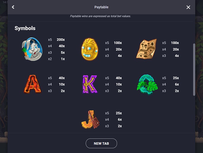 - Joe Rabbit will appear as the best paying regular symbol, also giving payouts for two and more matching icons but on the payline - 1x, 5x, 40x, and 200x.