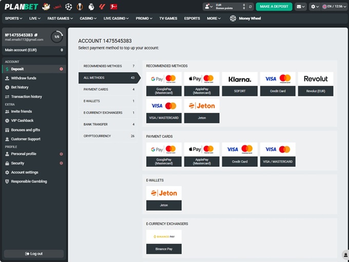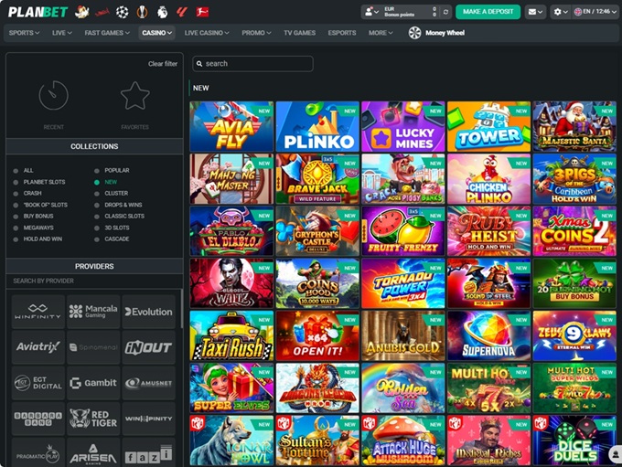 Also, table games and live casino are covered, but Planbet goes a step further than many other sites and offers content like crash games, TV games, quick games... even fishing and hunting slots! The live section features blackjack, roulette, and baccarat with live dealers, and some tables are themed around sports leagues or local trends. Hands down - a lot is going on in the gaming library of this casino!