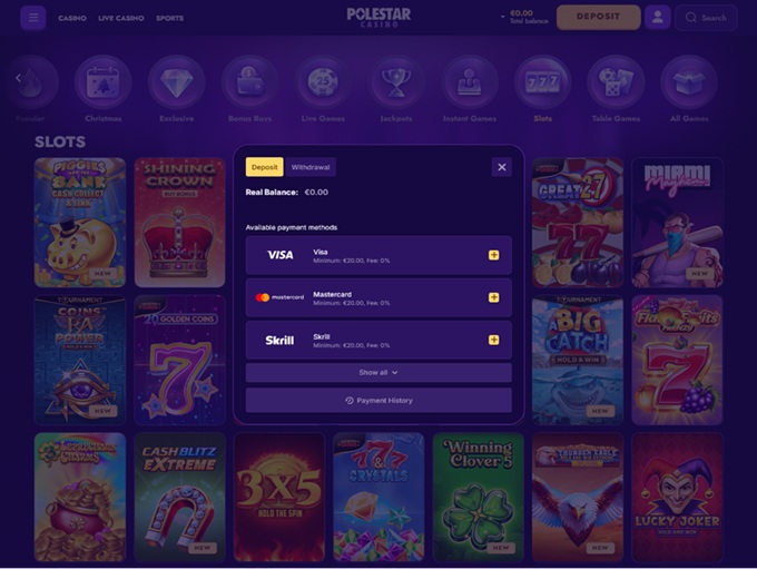 Polestar offers a wide range of bonuses and promotions including extra spins as a welcome gift, cashbacks, weekend reloads and loyalty perks for the case haredend players. Here’s a breakdown of their offerings.