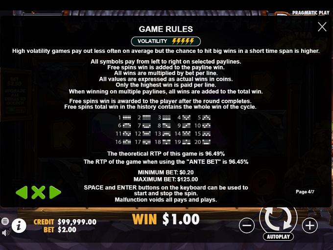 Drill That Gold is a high-volatile online video slot with a RTP of 96.49%. The payout odds are not the highest out there, but this is certainly a game with decent payout potential.