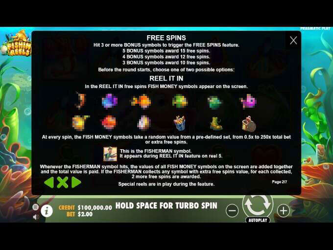 - Reel It In – this feature comes with a Fisherman symbol which will only be present on 5th reel.