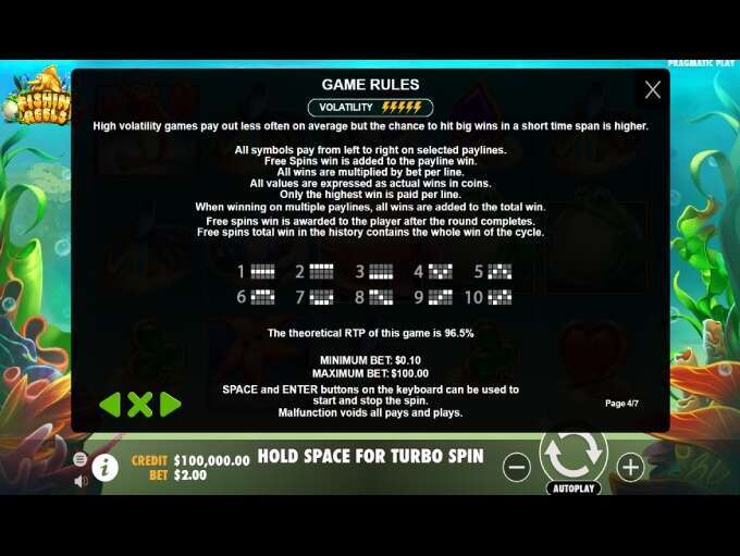 - The highest paying symbol is a fish while frog, crab and a starfish pay slightly less