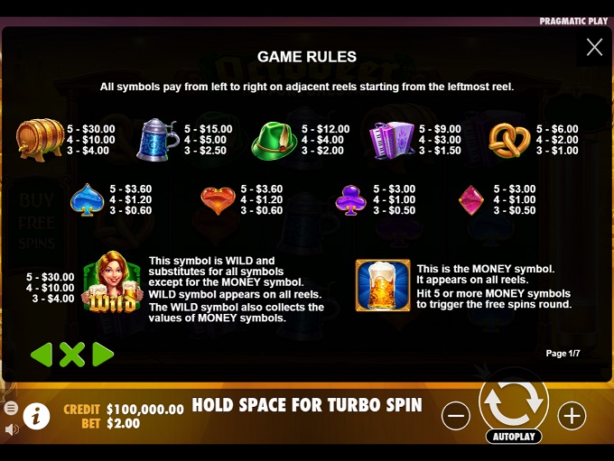 Octobeer Fortunes is an engaging online video slot with big win potential as it comes with high volatility. Also, attractive instant cash prizes in the base game are definitely something that many players will like. Those awards become even bigger during the free spins. The game is compatible with both PC and mobile platforms.