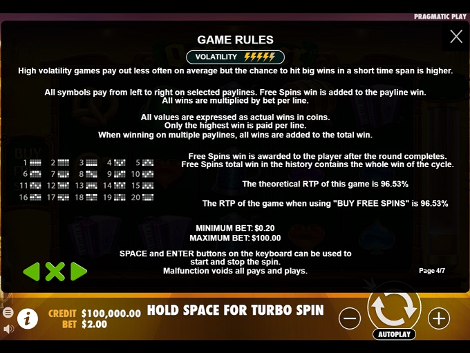 Pragmatic Play software provider released this game in August 2022. The game features a 5x3 layout and 20 paylines. Paying Wilds have some additional features that with Money symbols bring cash prizes, and there are also free rounds with even greater rewards.