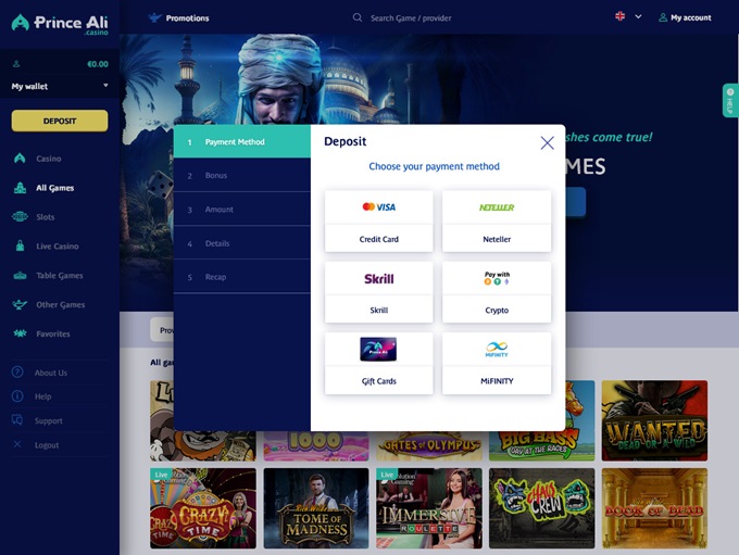 PrinceAli’s website provides various payment choices, including popular credit/debit cards and e-wallets such as Visa, MasterCard, Skrill, Neteller, Bank Wire Transfer, and ecoPayz. However, the availability of these options may vary by country.