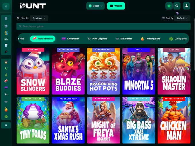 The slots are powered by renowned developers like Pragmatic Play, Relax Gaming, Hacksaw Gaming, Slotmill, BGaming, Evoplay, Rogue, and Fantasma Games, ensuring top-tier quality. Among the standout titles is Aztec Treasure Hunt, an exclusive Pragmatic Play slot developed specifically for Punt. Other popular slots include: