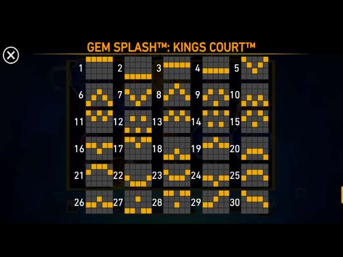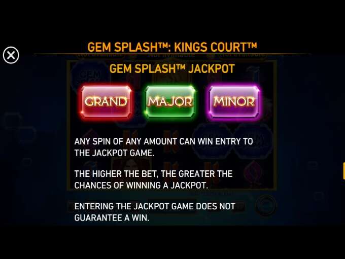 Gem Splash Kings Court is an online video slot released by Rarestone Gaming, which is configured on a 5x4 grid layout with 30 paylines and offers popular features such as: Wild, Scatter, Free spins, Jackpot and more.