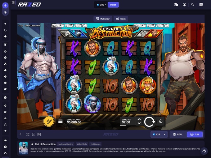 Razed, with meaning to destroy completely by knocking down or breaking to pieces, will knock you down with its great offer! Developed by the passionate team at Pretense Flip N.V. in March 2024, it brings a fresh experience to the world of crypto-gambling! Built for players of all levels, this digital masterpiece offers seamless transactions using popular cryptocurrencies, providing a straightforward way to deposit and withdraw funds.