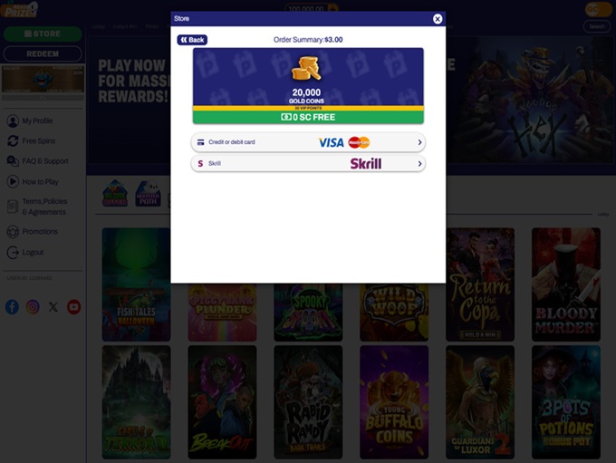 When it comes to Gold Coin purchases, this social casino keeps things simple and secure. While players don’t need to buy Gold Coins to enjoy the games or claim sweepstakes entries, some prefer topping up occasionally to extend their playtime, and Real Prize makes that easy to do!