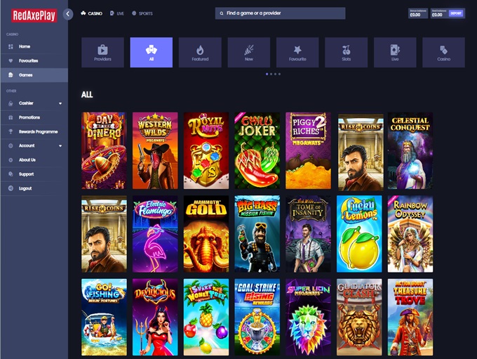 RedAxePlay offers a comprehensive online casino game library that caters to the needs of gamers with an array of game types such as slots, table games, live casino games, jackpot games, and casual games – more than 3,500 of them!