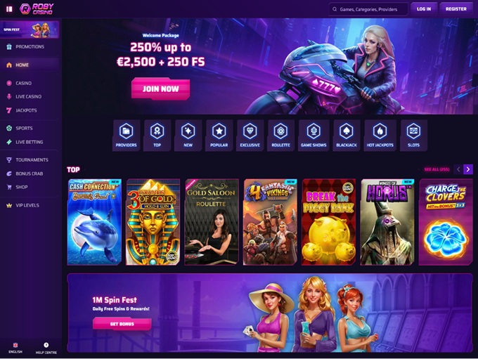 If we judge Roby Casino only by its color palette, the first impression is pretty clear. Pink, purple, neon touches. It can easily look like the site was built with a more female audience in mind.