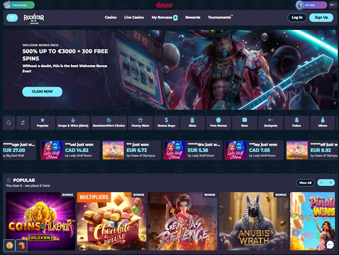 RockstarWin Casino offers a dynamic and legitimate gaming journey, operating under a license from the Government of Curacao. Players can explore different categories like slots, live casino, jackpots, and unique offerings such as crash games and megaways.