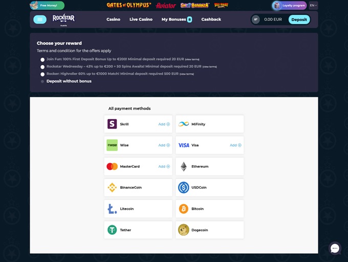 RockstarWin Casino prioritizes secure and seamless banking by offering a range of trusted payment methods. Players can enjoy stress-free transactions, knowing their details are safeguarded by advanced SSL encryption and cutting-edge security protocols. This ensures complete protection from unauthorized access or third-party interference.