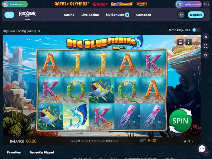 RockstarWin Casino offers a gaming library designed to satisfy players of all preferences. The slot section alone is a treasure trove, featuring iconic favorites like Book of Dead alongside trendy hits such as Big Bass Bonanza. Other titles are: