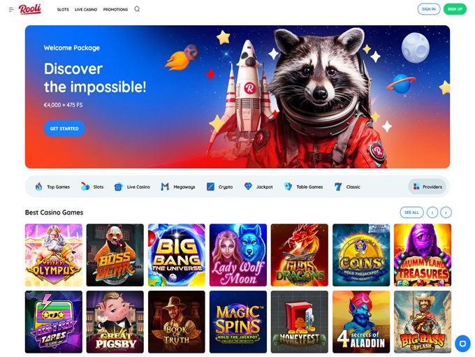 … Rooli is where the real fun begins, offering a gaming galaxy that spans over a thousand constellations. With a roster of over 100 stellar software partners, this cosmic casino promises an experience as diverse as the universe itself – from the classic allure of Slots and Table Games to the thrilling excitement of Crash Games and Shows, there’s a cosmic adventure for every kind of gambler!
