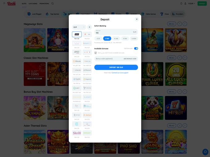 Slots: Unquestionably the crowd-pleaser, Rooli Casino’s slot selection is a dazzling array of options for true slot aficionados. Navigate effortlessly through the main menu to the slots section, where a treasure trove of titles awaits: