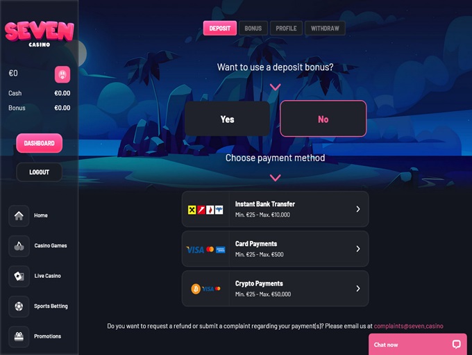Seven presents an enticing new prospect for players seeking a decent array of gaming options. Serving a rich selection of games spanning from slots to sports betting, this platform strives to become a sanctuary for gaming enthusiasts from both worlds – sport and casino. The user-friendly interface, coupled with diverse payment methods (crypto included), further solidifies its appearance.