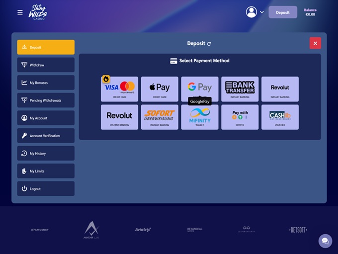 Shiny Wilds Casino ensures smooth and secure transactions by offering a wide selection of payment methods. Players can choose from credit and debit cards, e-wallets, and bank transfers, with popular options like Visa, Mastercard, and PaySafeCard available. Deposits are processed instantly, allowing users to fund their accounts without delays. The platform also supports multiple currencies, making it convenient for players worldwide.