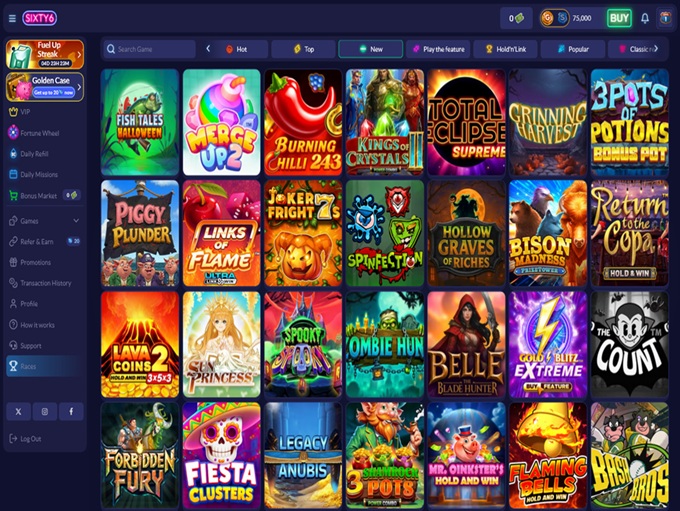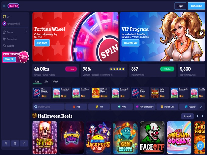 One of Sixty6’s best touches is that it lets users browse a portion of the game lobby without registration. This sneak peek helps newcomers get a feel for the games before diving in. Once logged in, players can use Gold Coins from the no deposit bonus to explore the catalog freely.