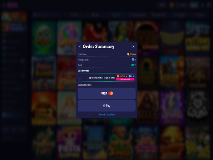 At Sixty6 Social Casino, players aren’t required to buy Gold Coins to enjoy the games. However, those who wish to boost their balance can easily do so using secure and convenient payment methods such as Visa, Mastercard, AMEX, Discover, ACH, Google Pay, or Apple Pay. The process is simple – just log into your account, tap the ‘Buy’ button, and select a preferred Gold Coin package. Each purchase may include bonus Sweeps Coins, with details clearly shown on the offer itself.