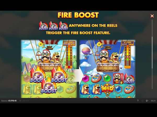 Fire Boost – is activated after landing 3 Scatter symbols on the reels, and it will help boost your position on the meter maybe even to the very top. If landing 3, 4 or 5 of these icons in the same spin, you will be awarded with scatter wins (x2, x20, x200).