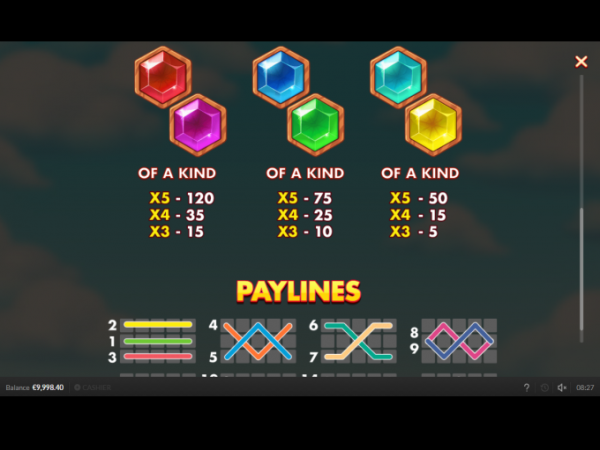 It is configured on a 5x3 grid with 25 paylines and also we are looking at a medium – high volatile online one – armed bandit with an RTP value of 95.78%.