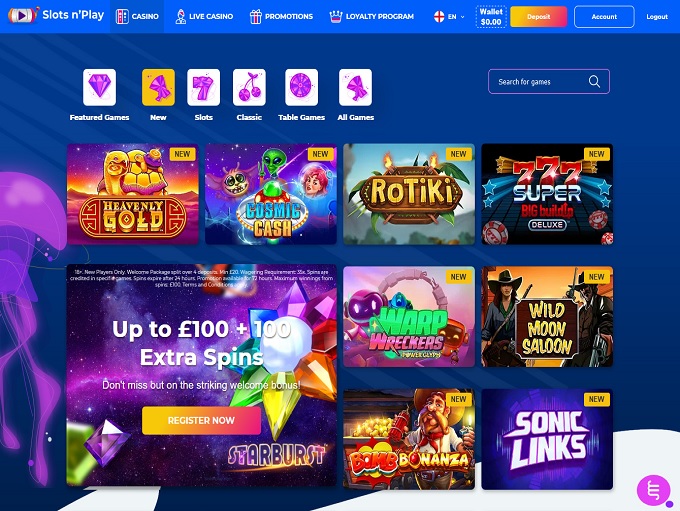 Slots n’ Play Casino is an online platform that is home to games which includes wide range of offering from the biggest video slot titles to the newest table games. Powered by Aspire Global International Ltd. which is fully licensed and regulated by the Malta Gaming Authority and the UK Gambling Commission, this platform.