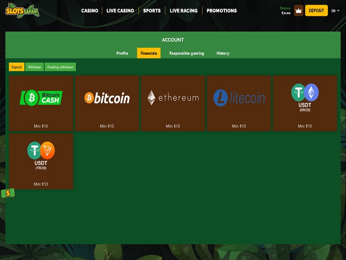 To fund their accounts, members can choose to use well-known debit cards like VISA and Mastercard for regular currencies, or they can opt to deposit cryptocurrency tokens like Bitcoin Cash, Bitcoin, and Litecoin. Regardless of the chosen payment method, all deposits are processed instantly, and no fees are deducted by the cashier.