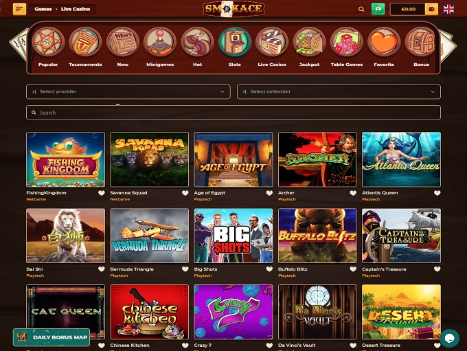 SmokAce is a new online gambling space that opened its virtual doors in 2023. It owns one of the most extensive game selections on the market, powered by some of the most renowned suppliers. Among them, you will find the most popular and newest slots, various sorts of table games, live games, and everything in between. The platform is also fully licensed and regulated by the Government of Curacao, so it seems that you are in safe hands.