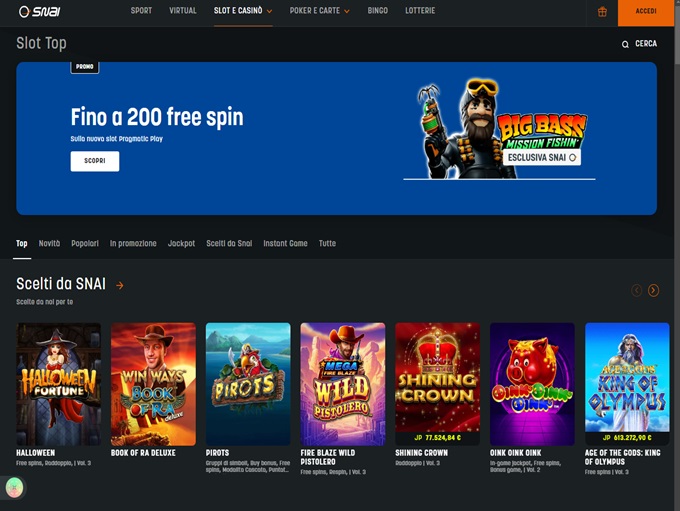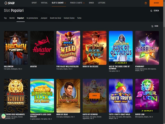 SNAI Casino is Italy's homegrown online gambling site. The parent company was formed in 1990 around horse race betting, bringing in sports almost a decade later.