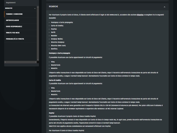 Many Playtech casinos have historically generated complaints related to document verification issues. The Italian licensing requirements SNAI operates under are probably the reason this is not an issue. Many of the player disputes in the past were from Eastern European players gambling at Philippines-operated websites with a good percentage of those complaints being from fraudulent players who could not or would not provide proof of identity internationally.