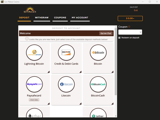 Two things strike you immediately on the home page of Sun Palace Casino - the pleasantly bright colors and the sense of order and clarity in the entire layout. This casino is one place you should definitely check out as a gambling enthusiast. The casino opened in 2002 and is part of the Main Street Casinos group, which also owns Vegas Casino Online and Las Vegas USA Casino. The casino is incorporated in Nicosia, Cyprus and licensed out of Costa Rica. Sun Palace Casino is open to players from the USA.