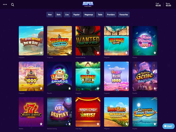 … this casino offers a Loyalty program. Upon logging in for the first time, players will discover the Super Game Cave in the menu, which houses all the details of the program. The first deposit earns players 300 coins, and additional coins are awarded for completing various tasks. These coins can be redeemed in the casino’s Super Store.