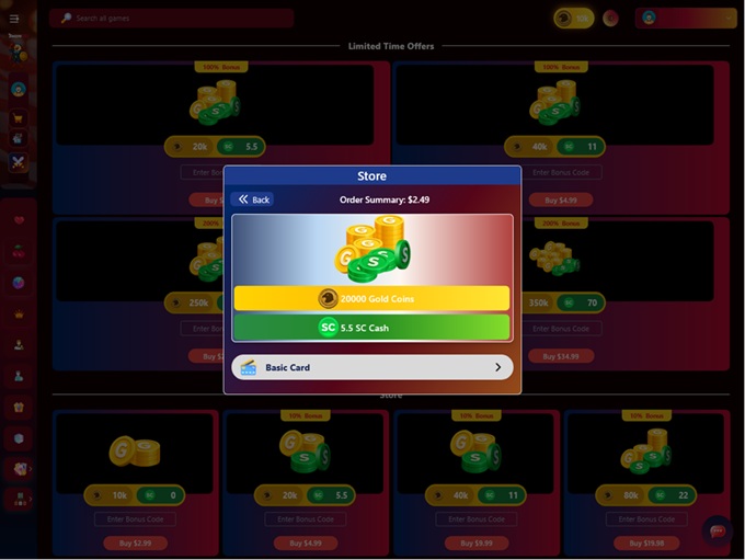 The other currency is Sweepstakes Coins, which unlock the sweepstakes side of the site. Players use them in sweeps mode, where gameplay can lead to prize redemptions. Unlike the fun-only coins, Sweepstakes Coins carry real value within the platform’s promotional system. In simple terms, wins with this currency can move a player closer to redeemable rewards.