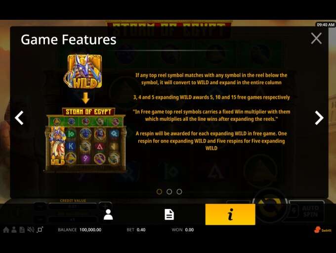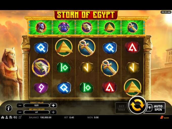 Storm Of Egypt is an online slot released by Malta based company Swintt, which plays on a 5x3 grid configuration with 40 paylines and offers features such as: Wilds, Expanding Wilds, Free spins, Multipliers and more.