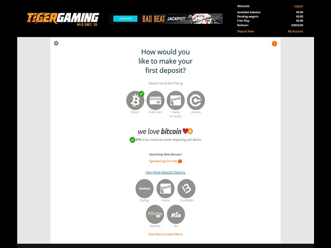 Online casino and poker aficionados can use a wide range of services to fund their account with Tiger Gaming including Neteller, Visa, Mastercard and Skrill. Added to these and the