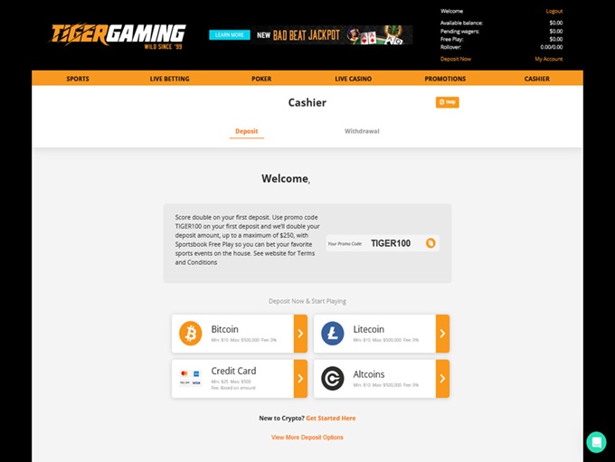 Online casino and poker aficionados can use a wide range of services to fund their account with Tiger Gaming including Neteller, Visa, Mastercard and Skrill. Added to these and the