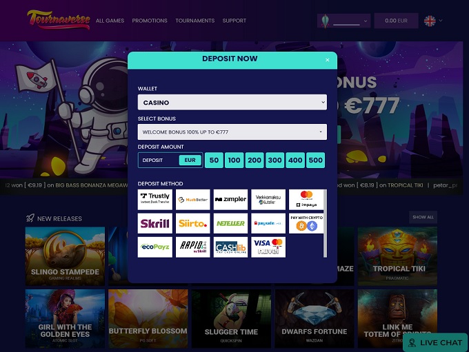 Under the futuristic spaceship theme of Tournaverse Casino lies several thousand online games, an impressive number of software vendors, and many promotions during the week.