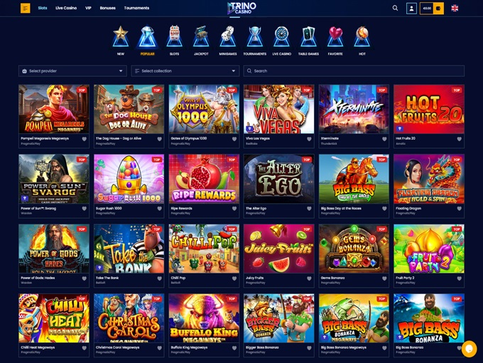 Online gaming platform with an interesting name - Trino, but with equally engaging features all managed by Fortuna Games N.V. and authorized by Curacao. Providing an up-to-date and immersive crypto experience, Trino features live online casino games hosted by professionals, decent bonuses, and additional spins on popular slots from reputable software providers.