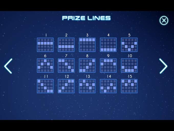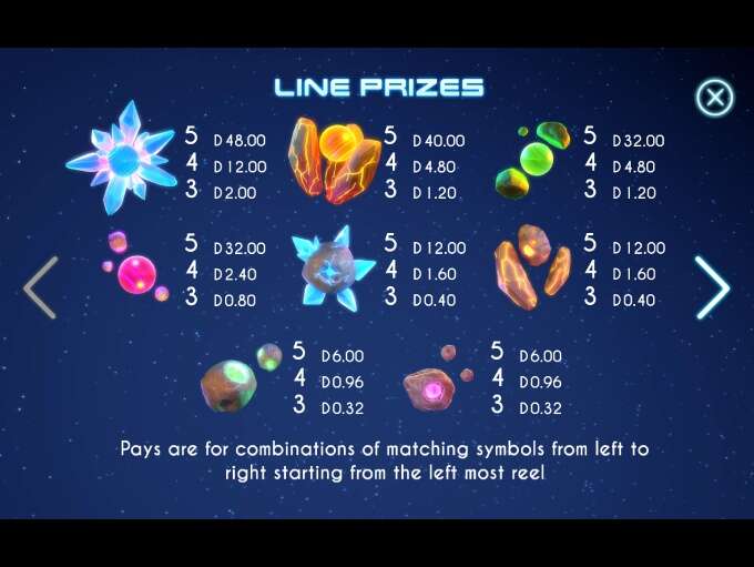- 8 of the various meteor icons where the Star – shaped symbol being of highest value paying up to x15 the bet for a combination of 5.