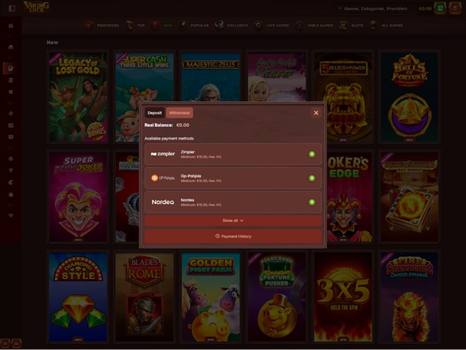Viking Luck supports both traditional payments and cryptocurrency. This gives players a nice amount of flexibility when it comes to funding their accounts. Card payments, e-wallets, and several well-known cryptocurrencies all appear in the cashier. In most cases, these methods qualify for casino bonuses as well, though it’s always smart to check the promotion terms before making a deposit.