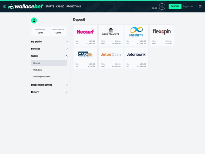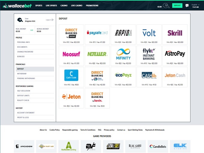 The platform offers not so much of a wide range of payment options, but secure ones, nonetheless. There are options like Visa, MasterCard, Interac, Zimpler, MuchBetter, Trustly, Bank Wire Transfer, EcoPayz, Neteller, Skrill, Rapid Transfer, AstroPay Direct, Brite, CashtoCode, MiFinity, Neosurf, and Sofort. Bit of a drawback is that the platform does not support cryptocurrencies, so there are only traditional payment options.