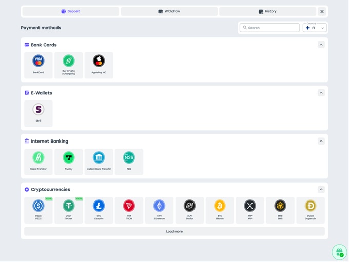 Players can enjoy a user-friendly and flexible approach to payment methods. The casino accepts a wide range of options, from traditional methods like Visa and Mastercard to popular cryptocurrencies such as Bitcoin, Ethereum, Tether, Dash, Monero, Dogecoin, NEO, Cardano, Bitcoin Cash, Ripple, Binance USD, and EOS, among others.