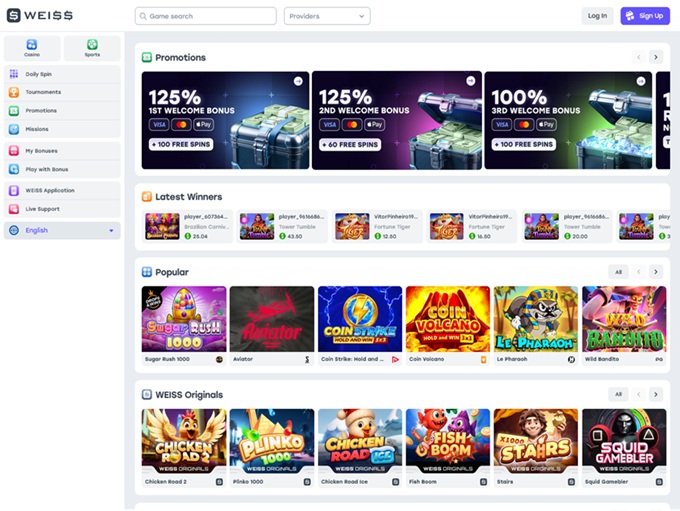 Weiss Casino also operates as a sports betting site, accessible via the ‘sport’ link in the upper right corner. The sportsbook section is modern and informative, helping users make informed bets.