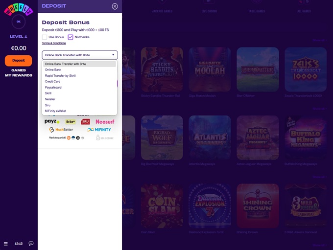 Please see all payment methods on the side of this page. In general MuchBetter, ecoPayz, Skrill, Neteller, Visa, and Mastercard are available for deposits and withdrawals and paysafecard is available for deposits only.