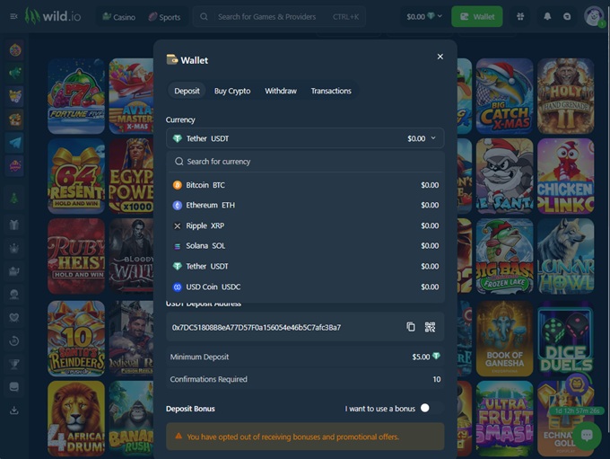 One of the most notable features of Wild.io Casino is its support for cryptocurrencies as a banking option, which allows for hassle-free deposits and withdrawals. Additionally, the casino doesn’t impose any fees on transactions, ensuring that players have a positive experience.