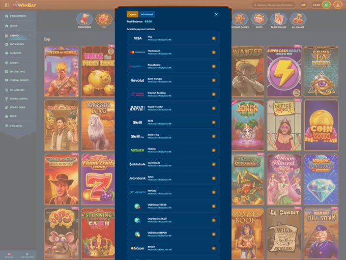 Winbay supports a broad selection of payment methods, allowing players to manage their funds with ease and confidence. Classic options such as credit and debit cards or bank transfers remain available, while the casino also embraces modern trends with full cryptocurrency support.