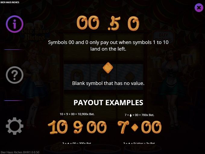 00 and 0 symbols only payout when symbols from 1 to 10 land on the left. There is also a blank symbol that has no value.