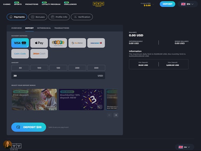 After these comprehensive details, we can say that the YYY Casino website left a lasting impression. Its user-friendly interface is particularly welcoming to newcomers in the online gambling scene. The array of payment methods and swift withdrawal process stood out as notable highlights.