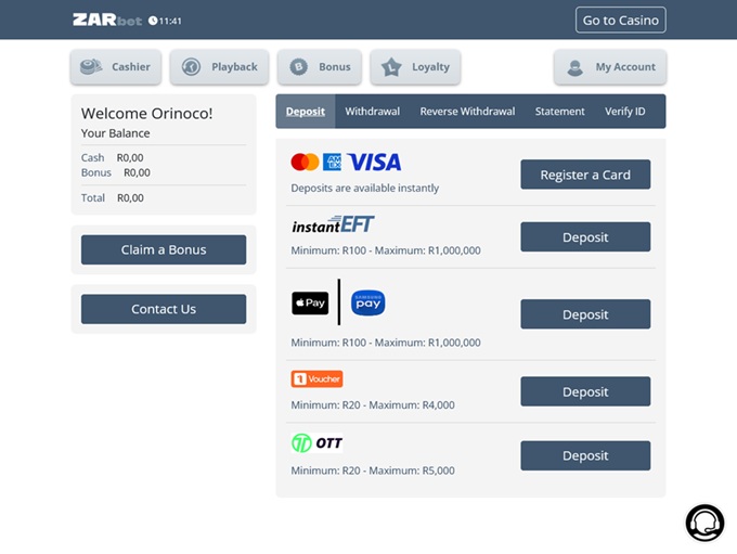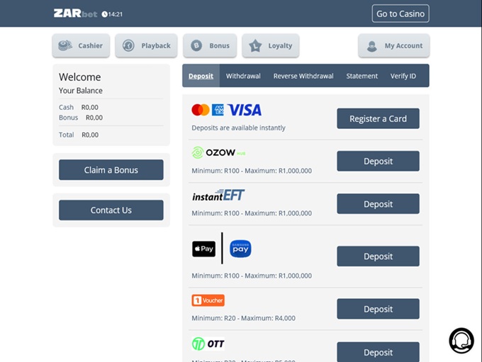Making a deposit or withdrawal at ZARbet is simple. After logging in, players just head to their account dashboard, choose their preferred method, enter the amount, and follow the on-screen prompts. Deposits clear immediately in most cases, while cash-outs are confirmed once the funds are on their way. This streamlined system ensures that banking feels secure, efficient, and designed with the player in mind.